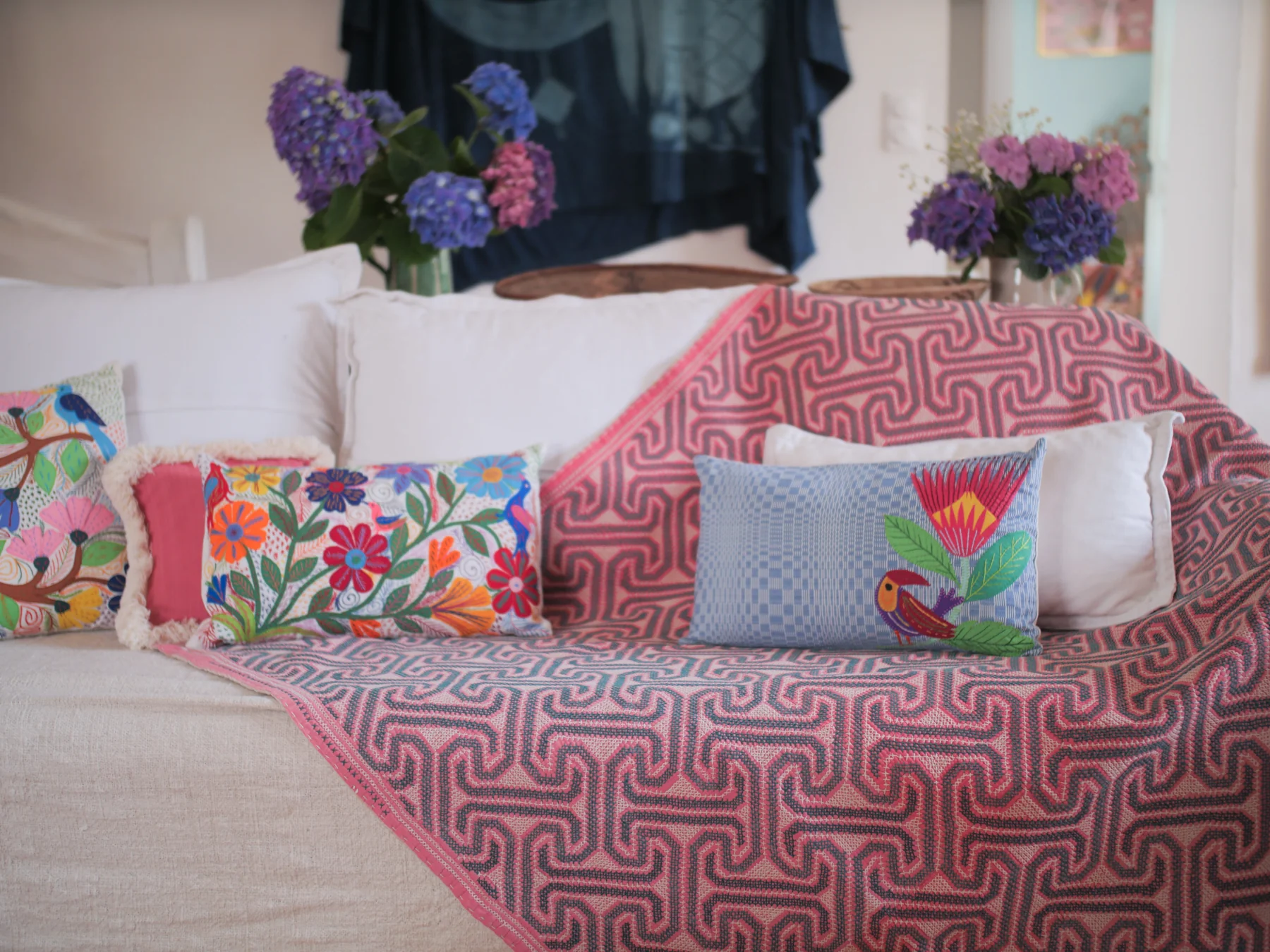 Produit : Jetée brodé vintage. Artisanat millénaire. Coton brodé main. Magnifiques couleurs pastel, roses, vert. De magnifiques motifs graphiques au point de croix. Il s’agit d’une pièce ancienne qui présente des signes d’utilisation, mais c’est une pièce rare et unique.