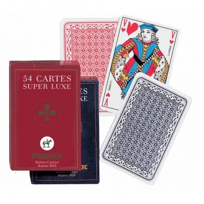 Découvrez le Jeu de 54 cartes Super Luxe Piatnik de Wilson Jeux, de belles cartes agréables en main, pour vos parties en famille ou entre amis.
