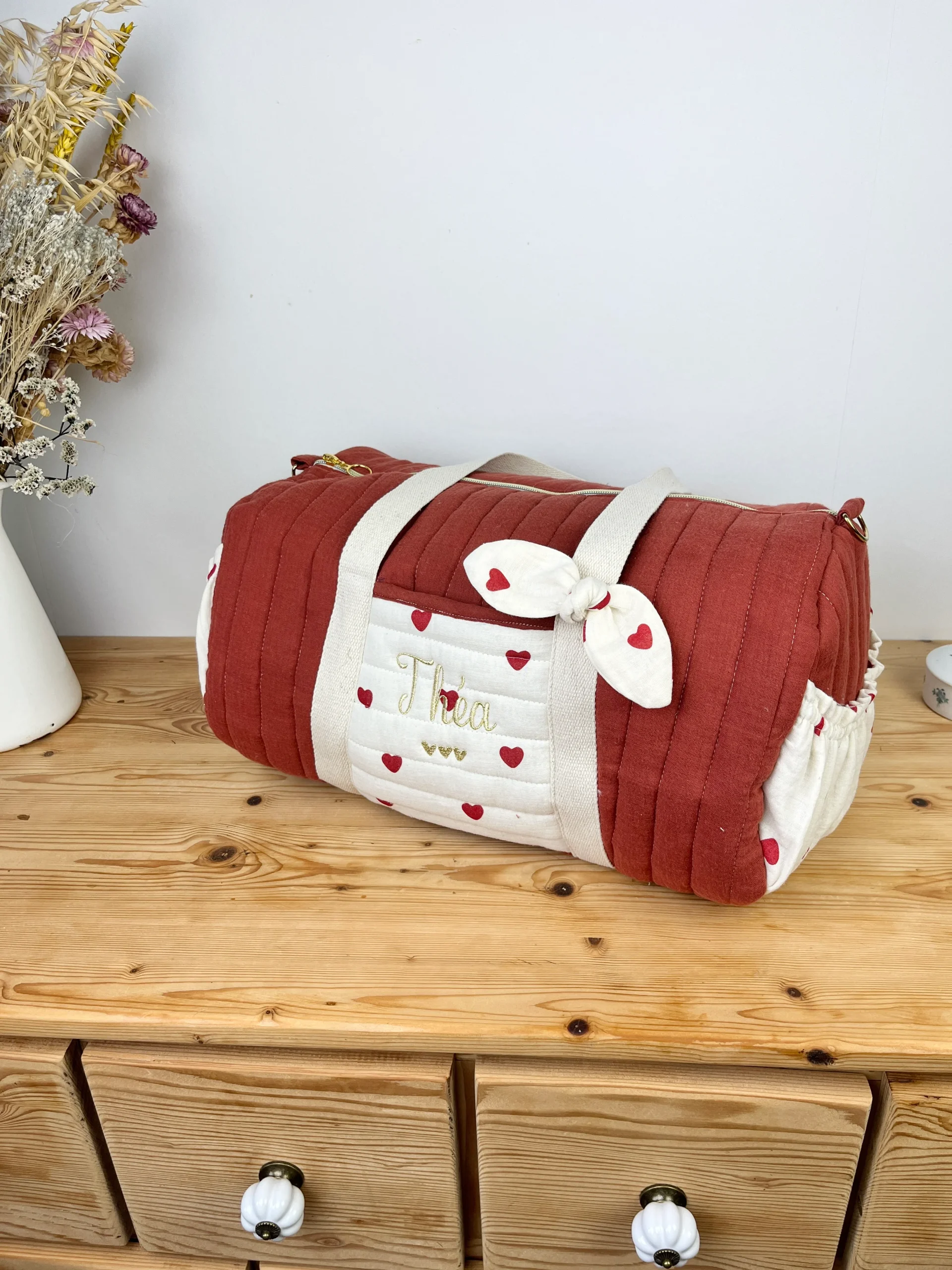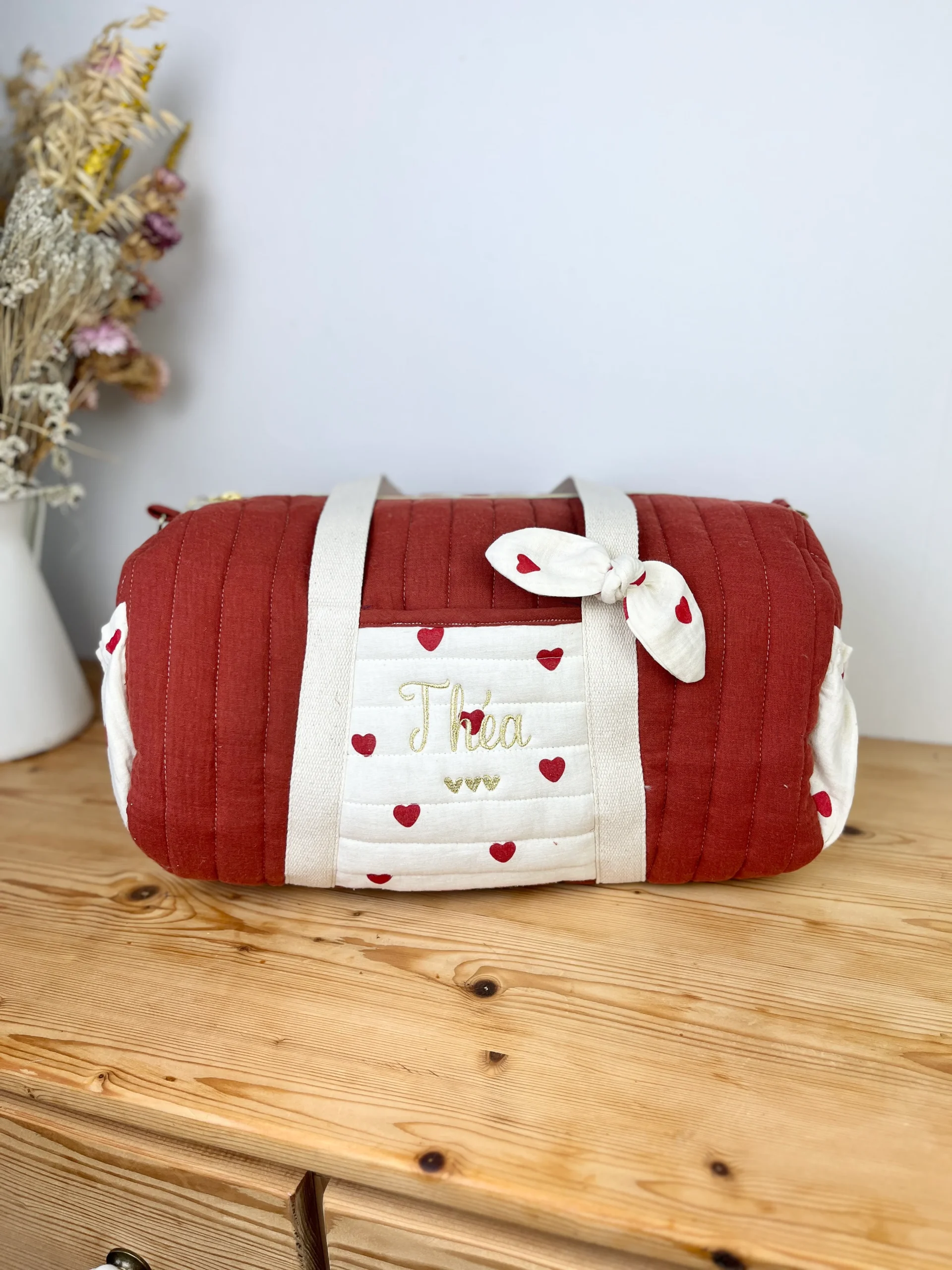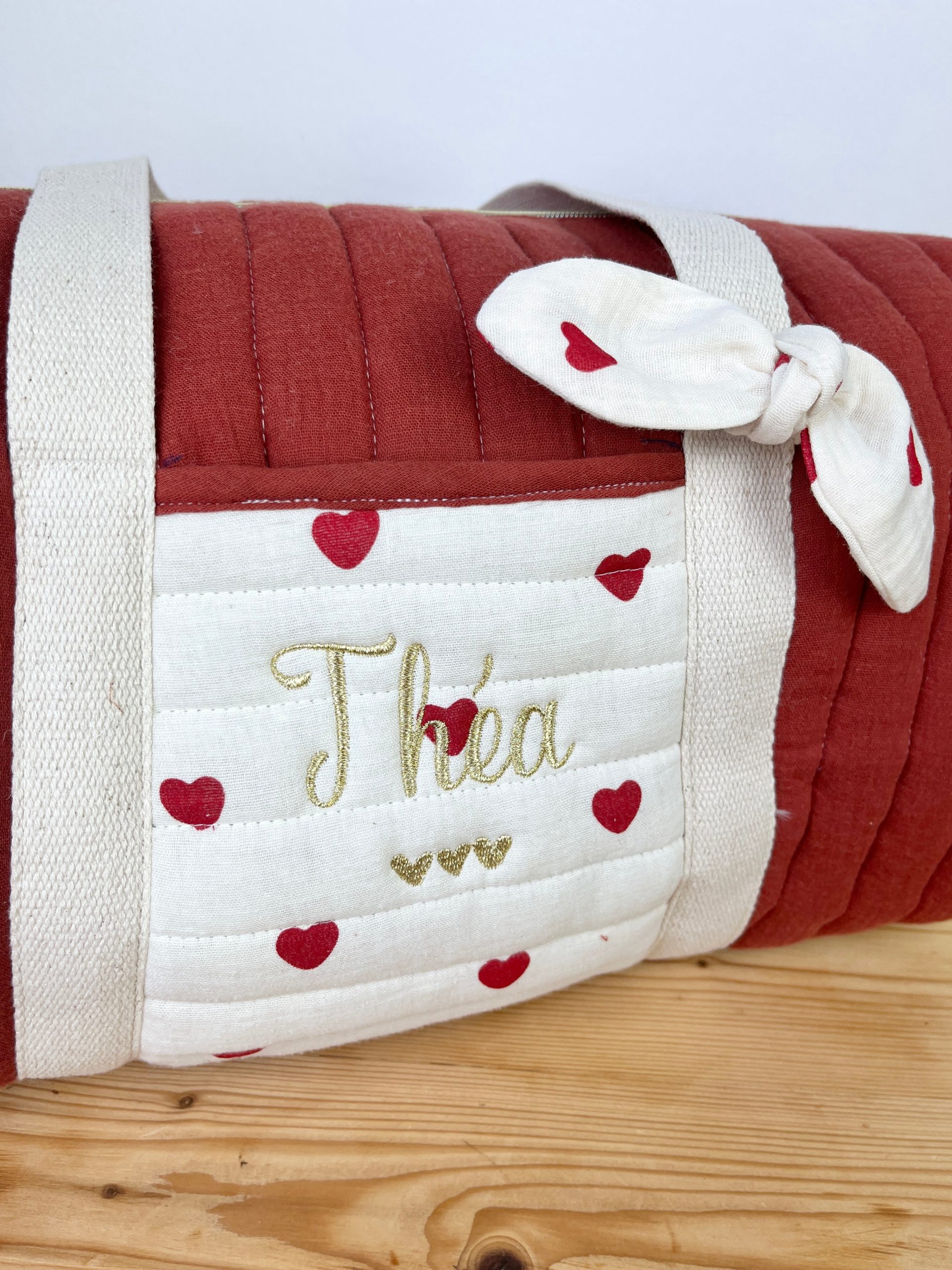 Léon le sac polochon adulte double gaze tomette et coeurs