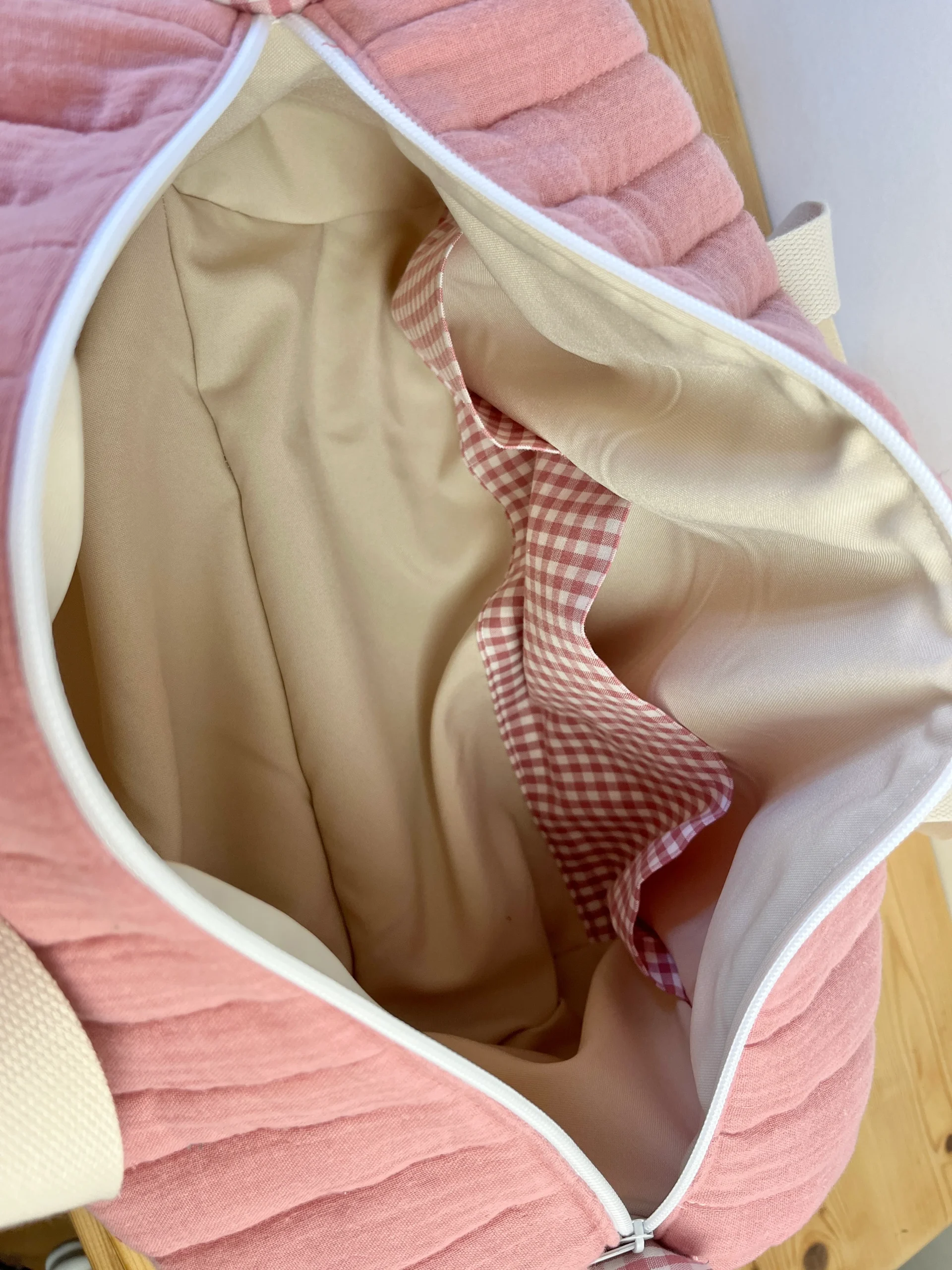 • Intérieur doublé en tissu beige avec poche intérieure en Vichy