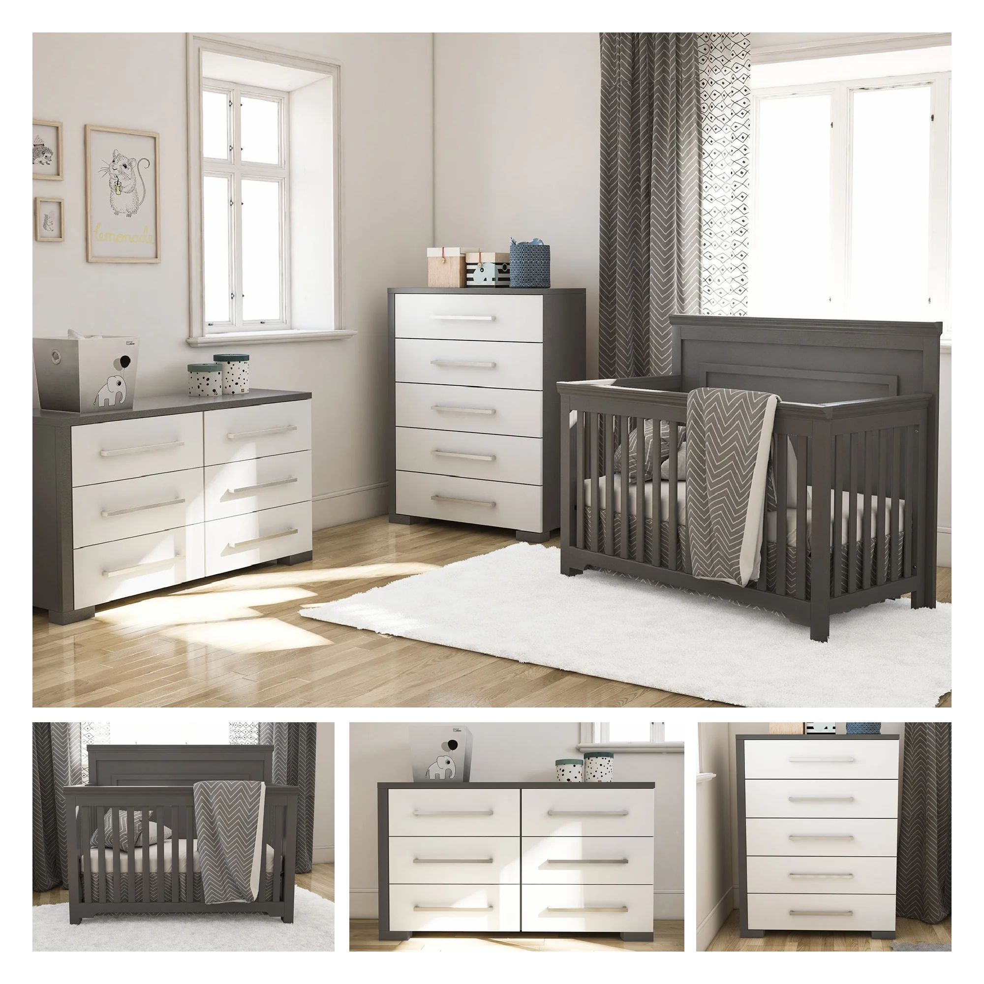 Lit bébé Karlstad – Trio collection joanna gris foncé et blanc