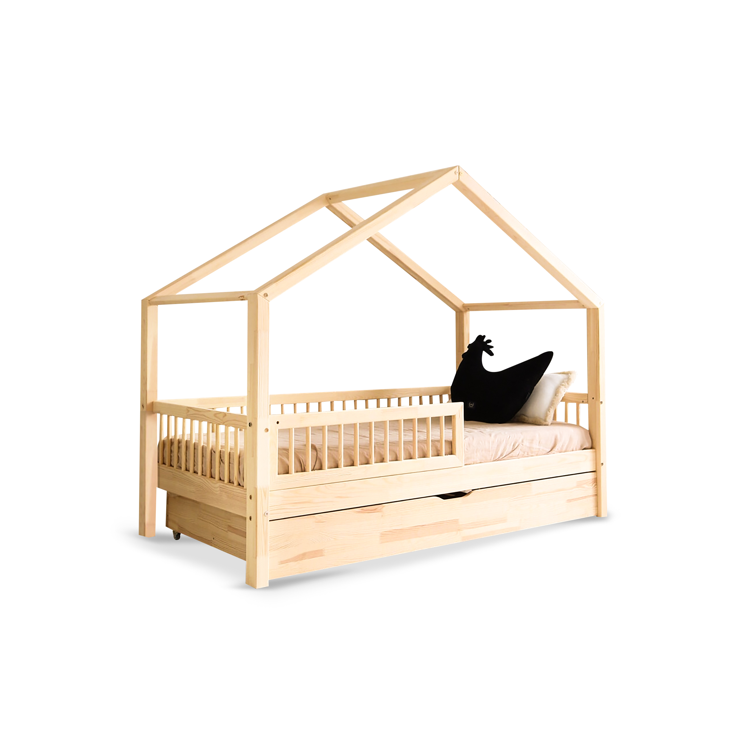 Le lit cabane Anja offre à votre enfant un espace de sommeil doux et protecteur, tout en apportant une dimension ludique à sa chambre. Sa forme de cabane crée un environnement apaisant et accueillant, parfait pour les petits qui passent à un lit plus grand, tout en ajoutant une touche d’aventure à chaque journée.