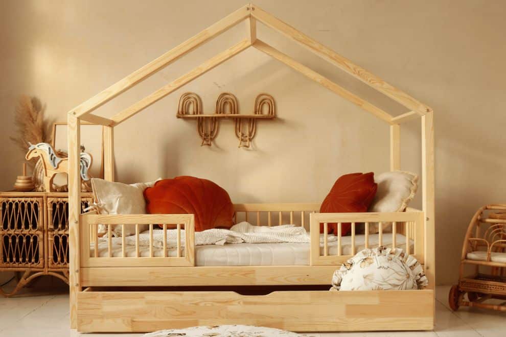Pour les lits peints, nous utilisons exclusivement des peintures à base d’eau, respectueuses de la santé des enfants et de l’environnement.