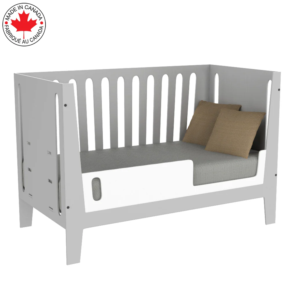 Lit de bébé évolutif Jade, gris pâle et blanc