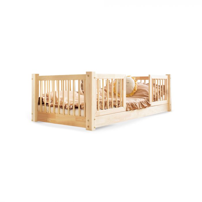 Découvrez le lit au sol Helsinki avec entrée centrale, une combinaison parfaite de sécurité, de confort et d’élégance pour la chambre de votre enfant. Conçu pour offrir un espace de sommeil apaisant, ce lit est équipé de deux barrières latérales qui protègent votre enfant tout en lui offrant un accès facile grâce à son entrée centrale. Fabriqué à partir de bois de pin massif certifié FSC, ce lit assure robustesse et durabilité tout en respectant l’environnement.