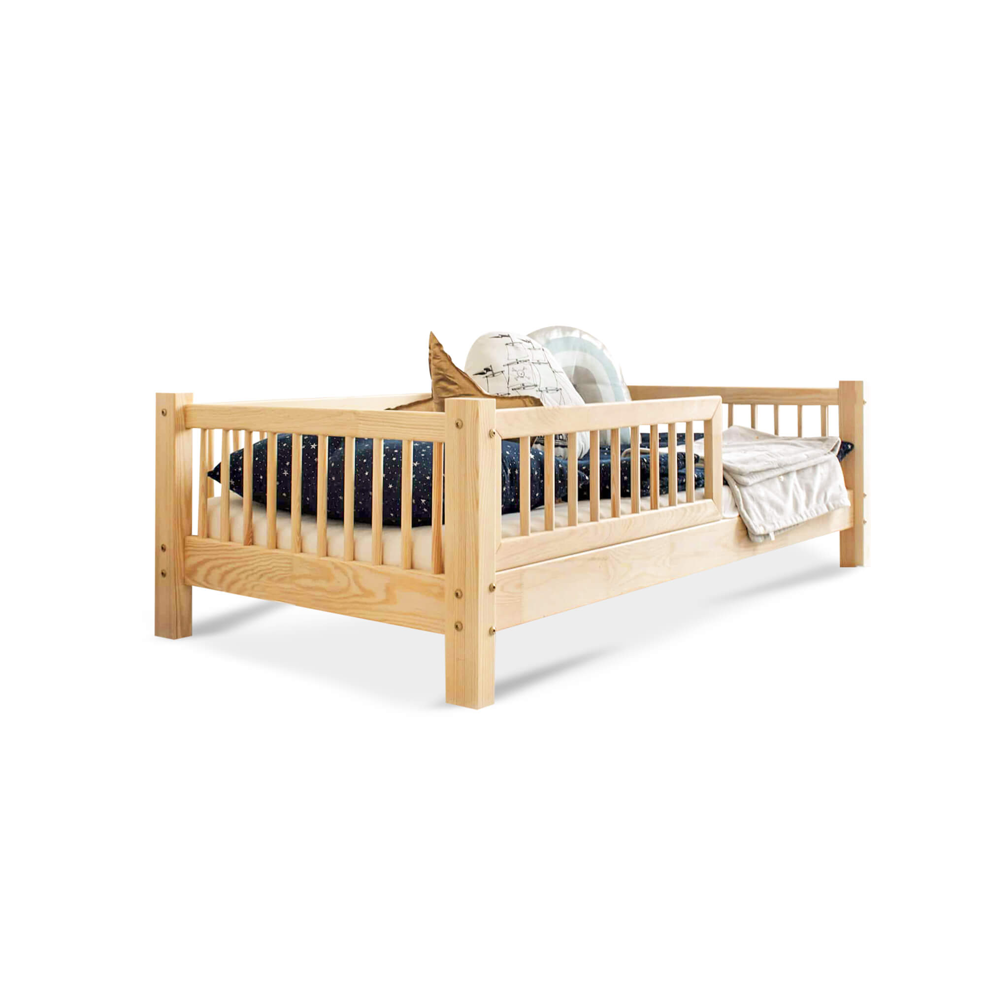 La sécurité de votre enfant est notre priorité avec le lit Stockholm. Sa barrière amovible s’adapte à toutes les chambres. Sa hauteur est conçue pour un sommeil sécurisé, offrant à la fois sécurité et sens de liberté.