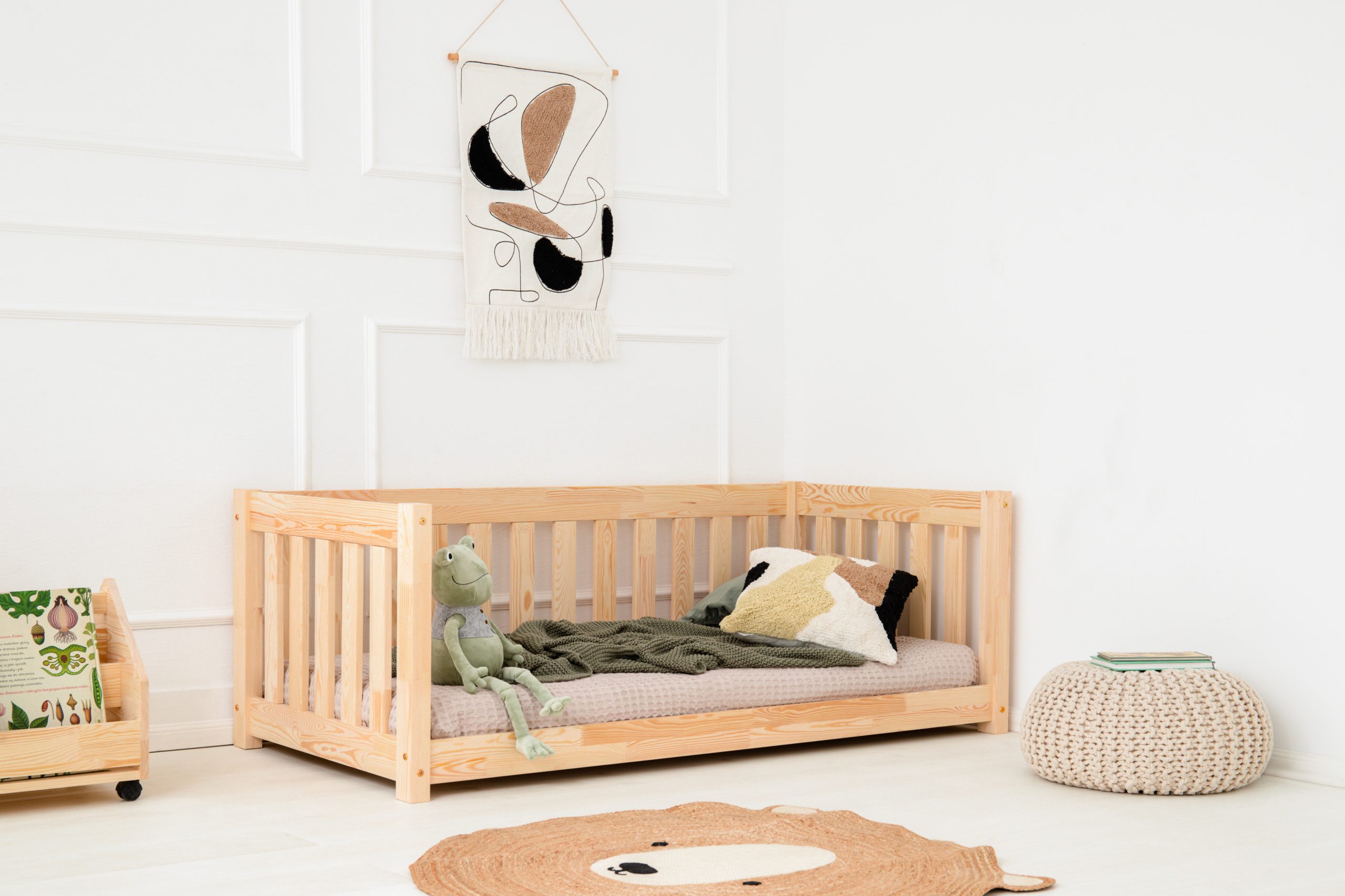 Conception robuste pour une nuit paisible : Le lit au sol avec barreau Emma se positionne comme l’allié parfait pour les nuits paisibles de votre enfant. Conçu avec rigueur à partir de bois de pin de haute qualité, ce lit allie robustesse et durabilité. Sa facilité d’assemblage et sa structure stable sont des atouts majeurs qui assurent à la fois la sécurité et le confort de votre enfant pendant son sommeil.