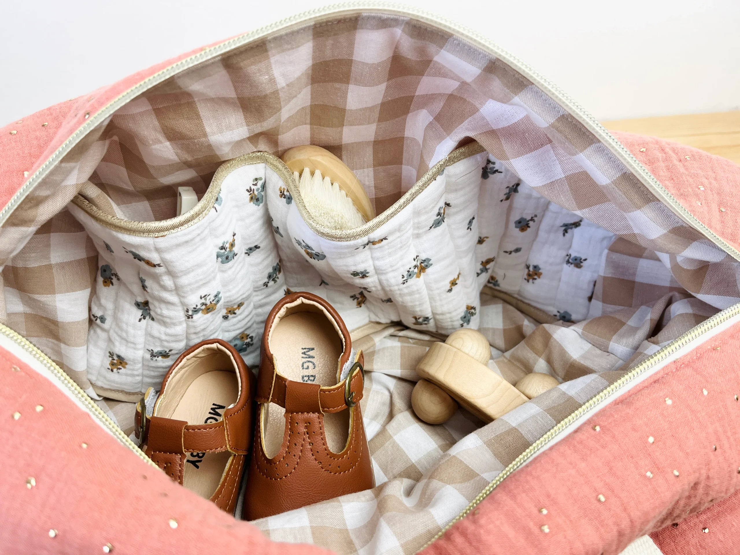 - Intérieur doublé en popeline de coton, avec 3 poches