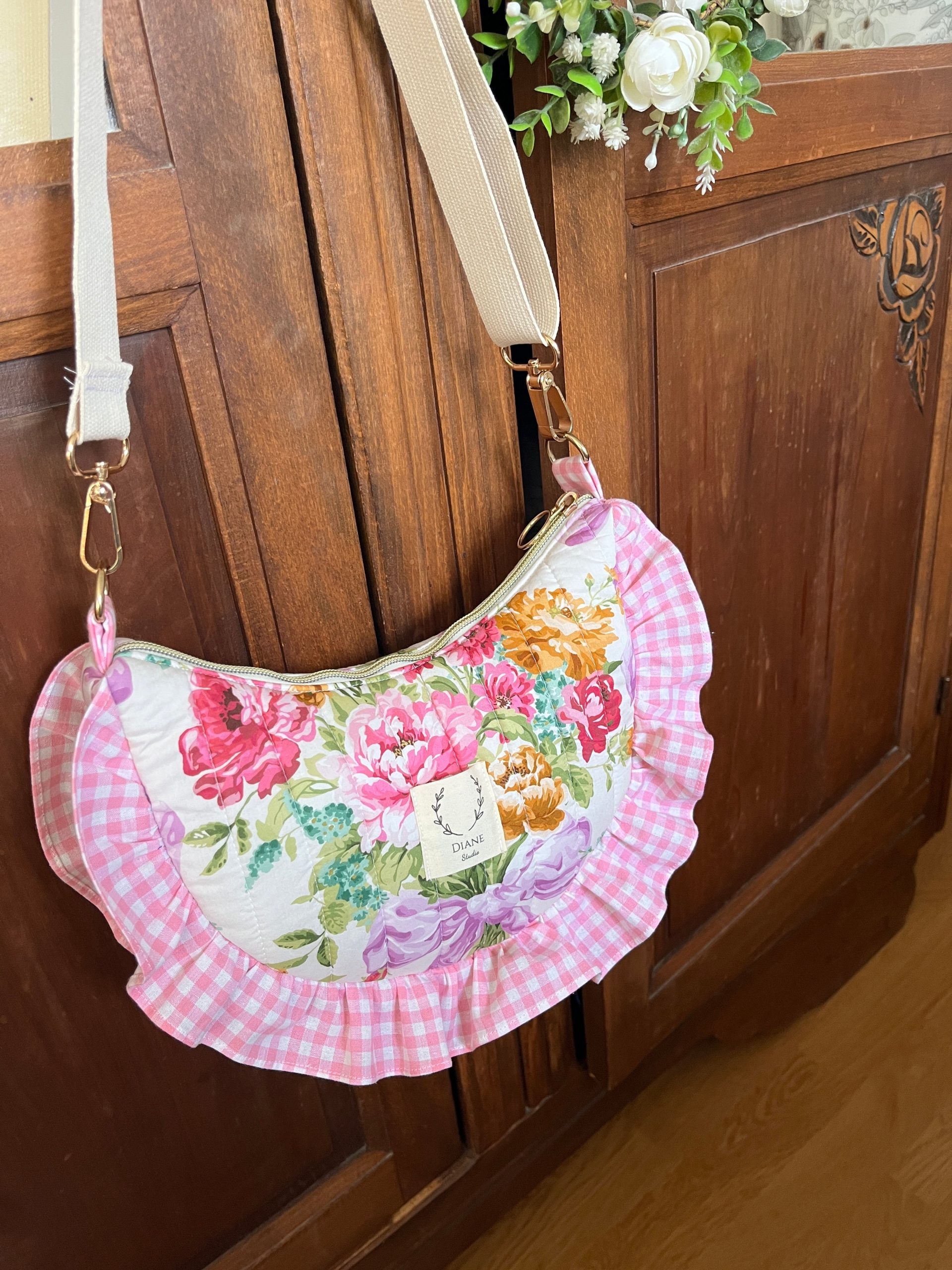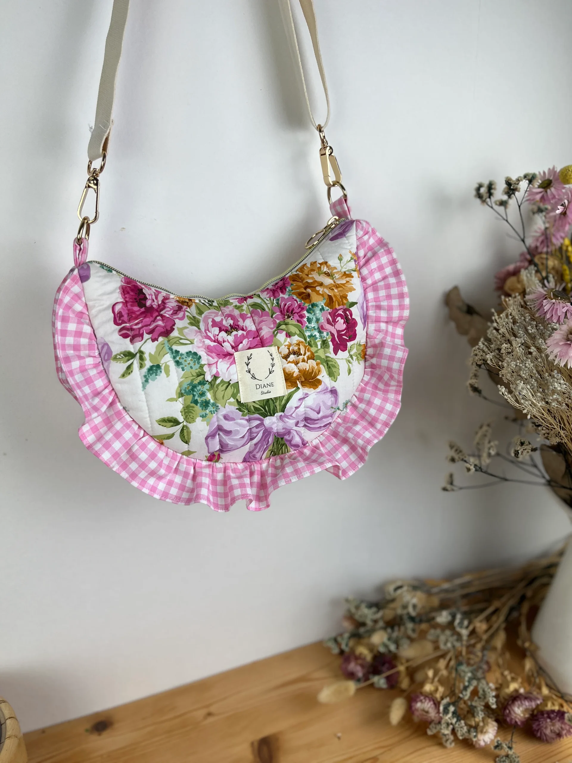 Ce joli sac croissant (forme demi-lune) est à la fois original, féminin et pratique. Sa particularité ? De larges volants de 5 cm qui bordent toute la silhouette et lui donnent ce style unique, romantique et affirmé.