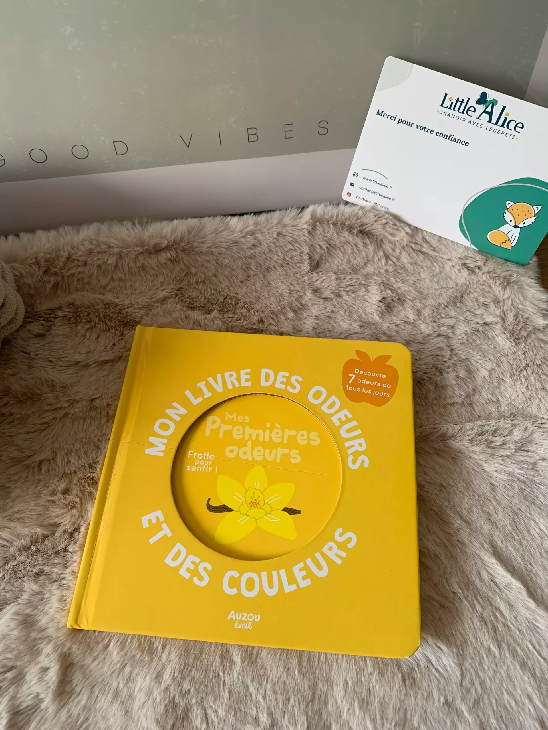 Découvrez Mon Livre des Odeurs : Mes Premières Odeurs des Éditions AUZOU, un livre sensoriel pour bébé et tout-petit dès 2 ans. Ce livre ludique propose 7 senteurs à découvrir en frottant les images, pour stimuler l’odorat, enrichir le vocabulaire et éveiller la curiosité.
