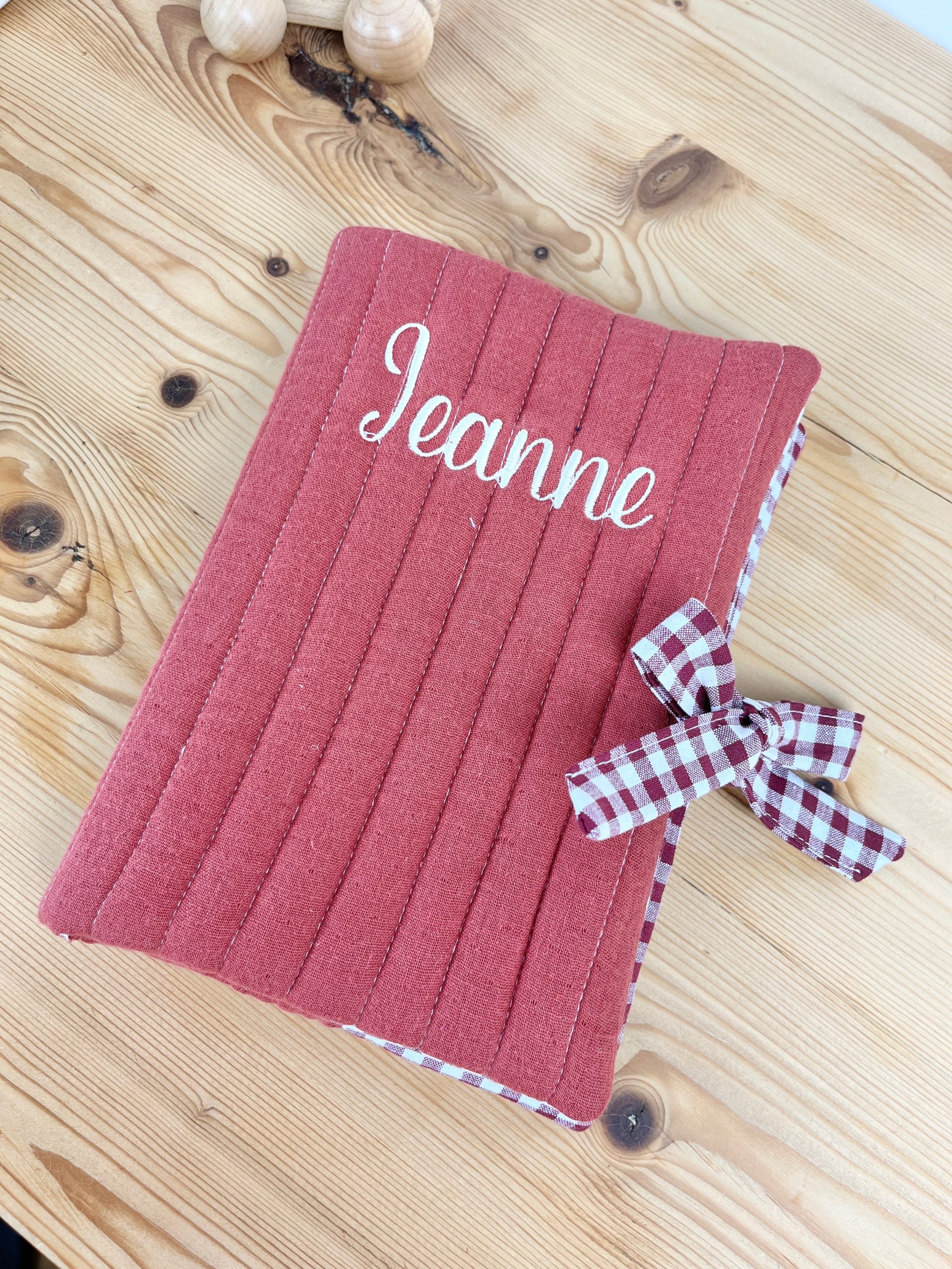 🎀 Finitions délicates : Deux petits liens en vichy permettent de le fermer joliment, et des rabats intérieurs en vichy assurent un maintien parfait du carnet de santé.