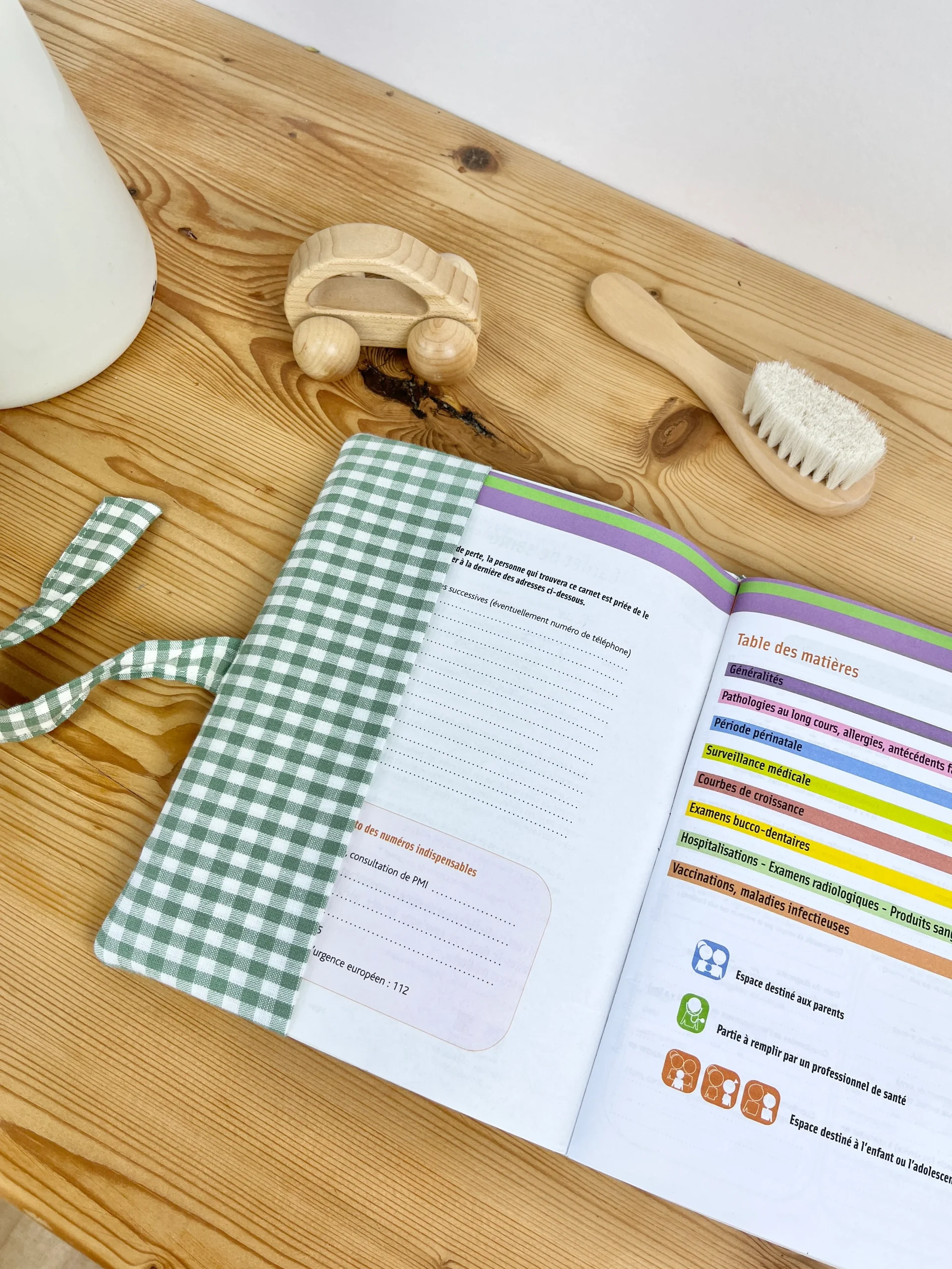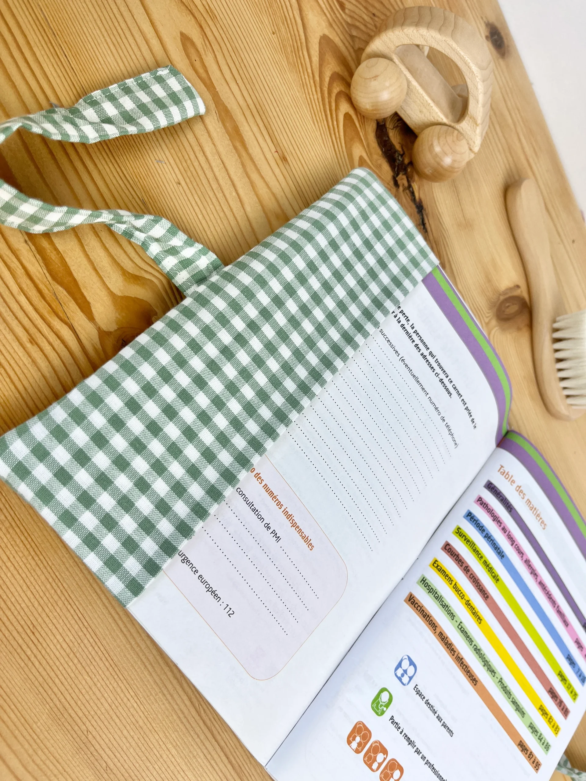 🎀 Finitions délicates : Deux petits liens en vichy permettent de le fermer joliment, et des rabats intérieurs en vichy assurent un maintien parfait du carnet de santé.