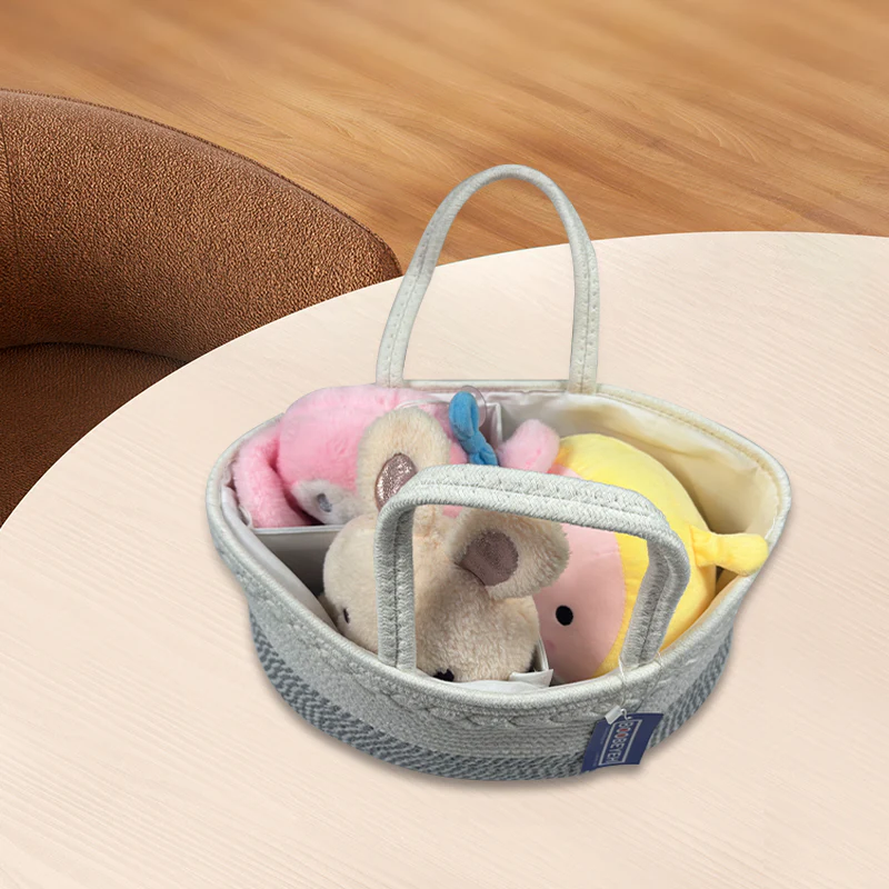 Gardez votre maison propre et organisée avec le panier de rangement pour jouets Boobeyeh en corde de coton gris et blanc. Conçu pour les parents occupés, ce panier de rangement est la solution idéale pour gérer les jouets, les vêtements et autres essentiels de manière sûre, élégante et pratique.