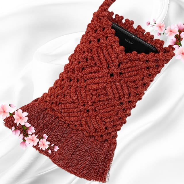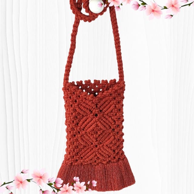 Cette Pochette bandoulière pour téléphone en macramé artisanale rouge accueille votre téléphone avec grâce et simplicité, tout en étant un fidèle compagnon de vos journées actives, voyages et moments partagés.