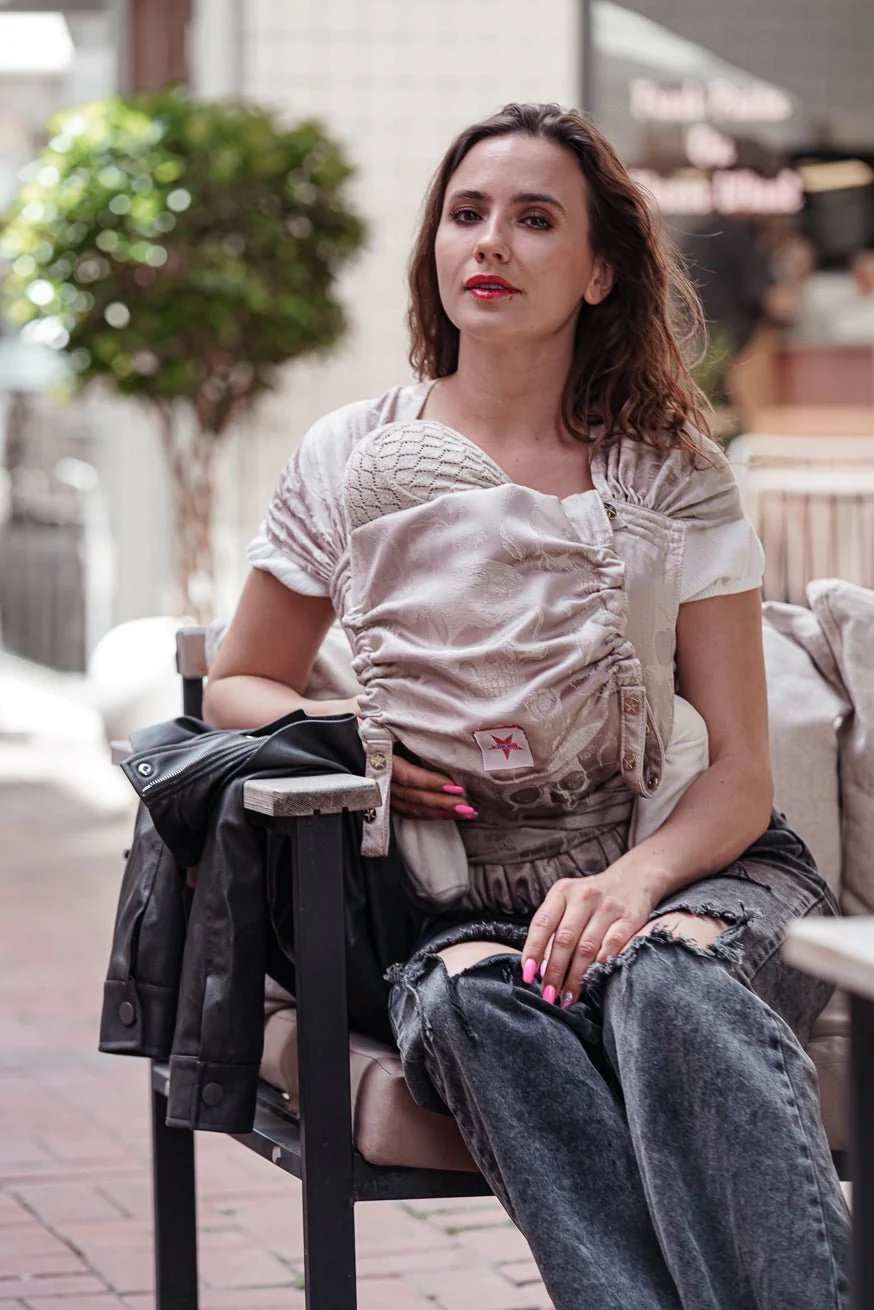 Der feine Materialmix aus 55% Micro-Modal und 45% Bambusviskose verleihen der Babytrage Silky Skulls einen unvergleichlich schönen Glanz.