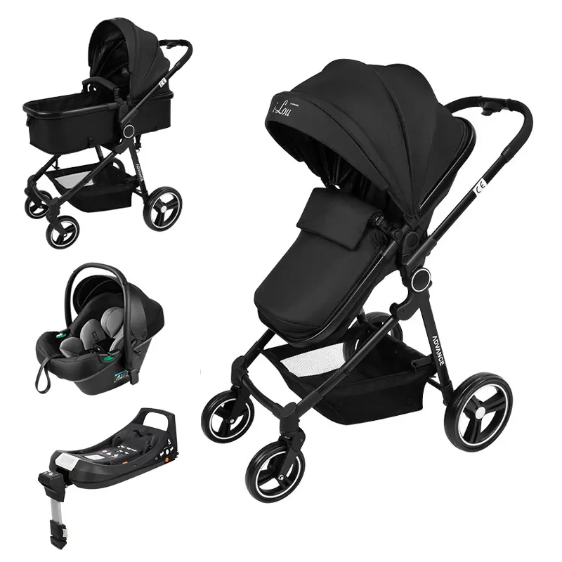 Poussette 4en1 – Coque I-Size + embase I-Lou Noir – 0m+