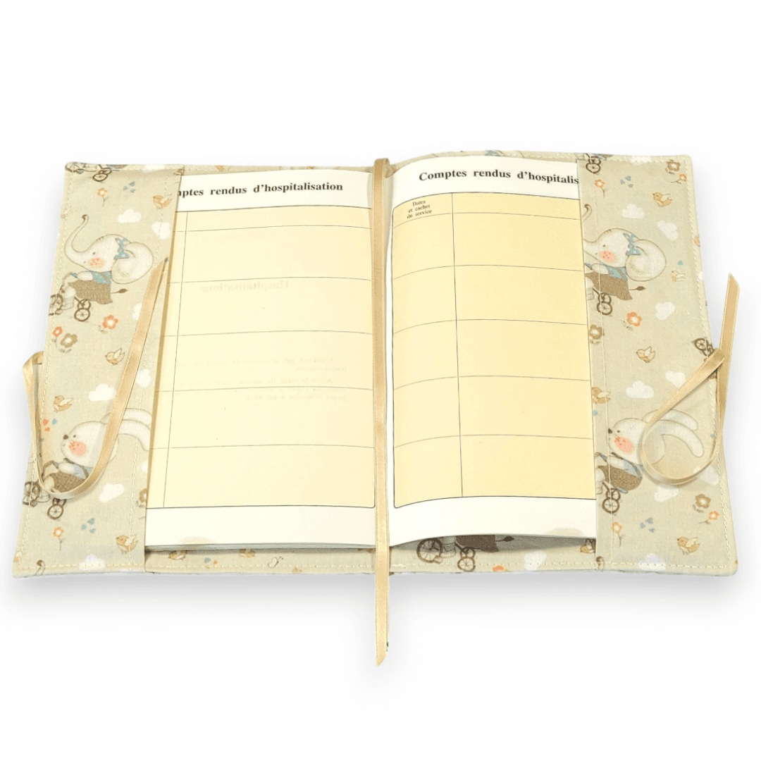Il facilite le repérage du carnet de santé dans un sac à langer, grâce à son imprimé « Oursons à vélo ».