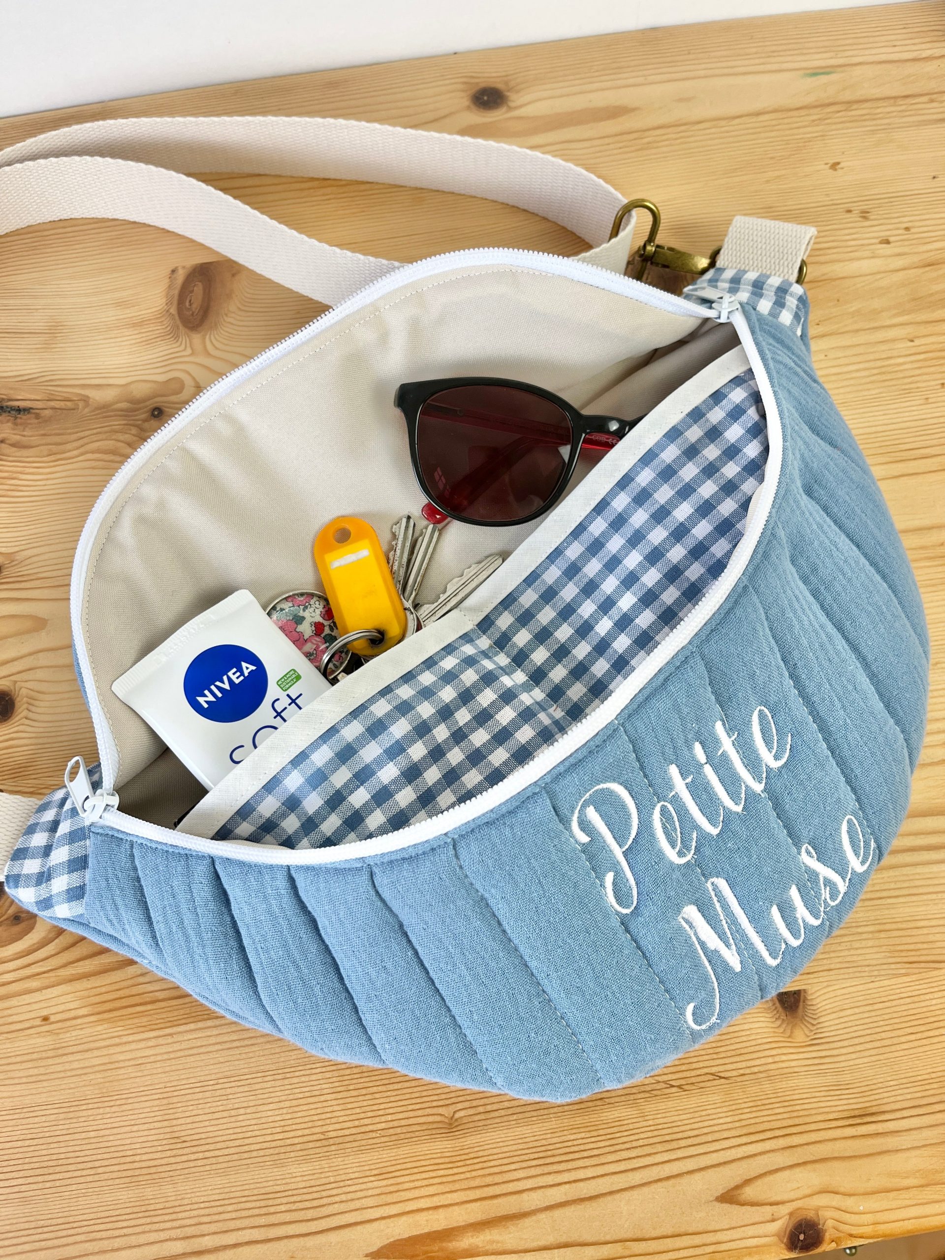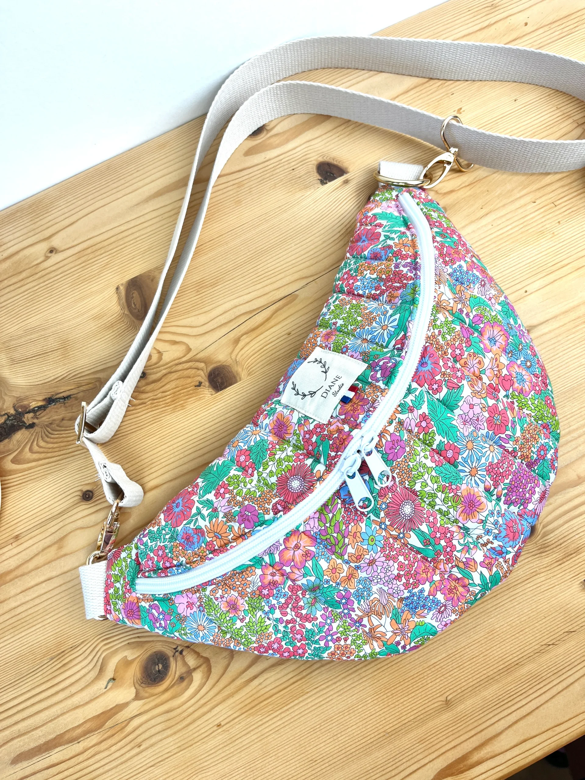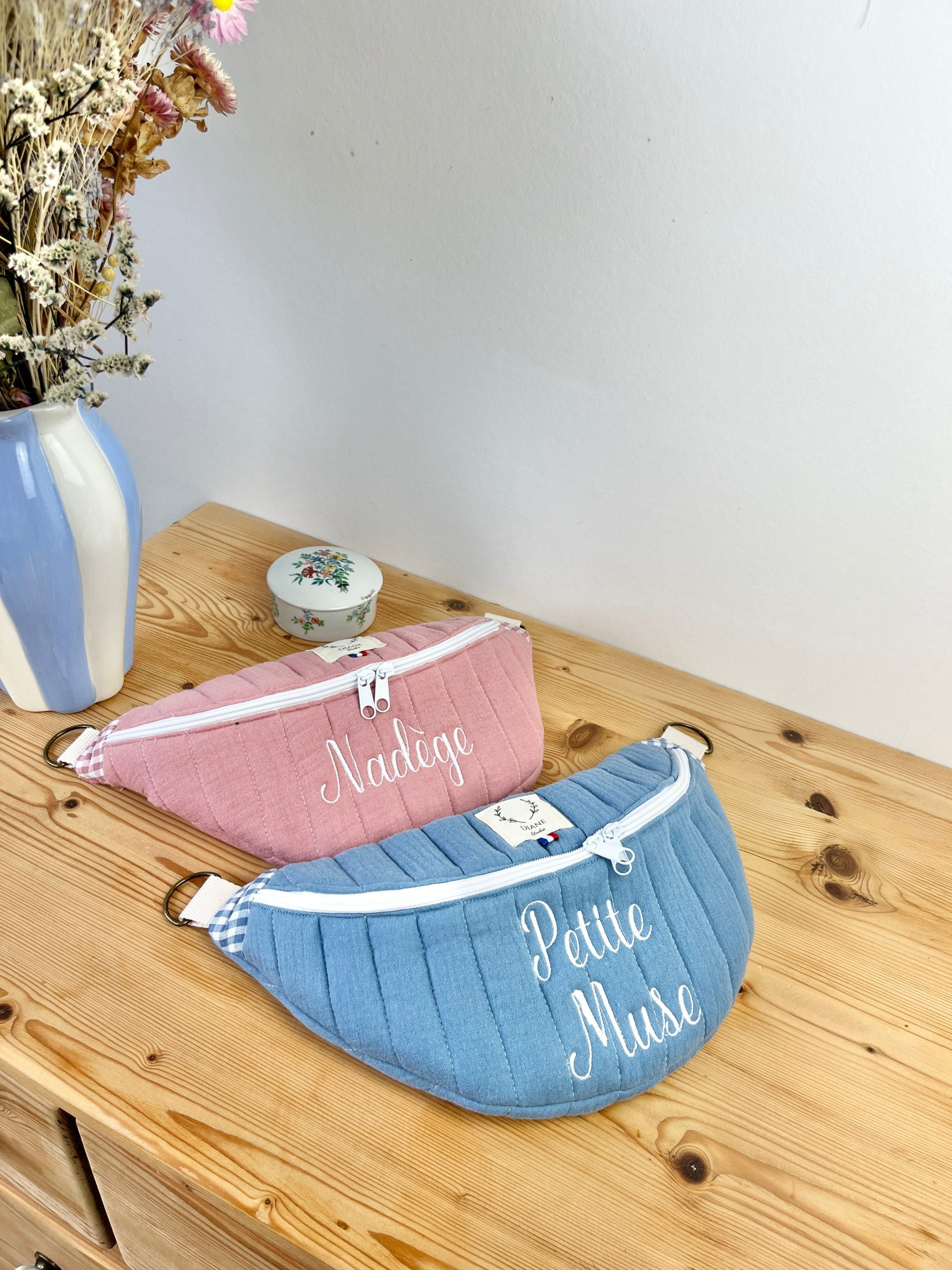 Ce joli sac banane vous accompagnera dans toutes vos sorties. Avec son anse interchangeable, vous pouvez facilement l’adapter à votre tenue en changeant de banane. Pratique et élégante, elle offre une grande contenance et des poches intérieures pour organiser vos affaires. Personnalisable à souhait, vous pouvez choisir les tissus et ajouter une broderie pour le personnaliser encore plus !