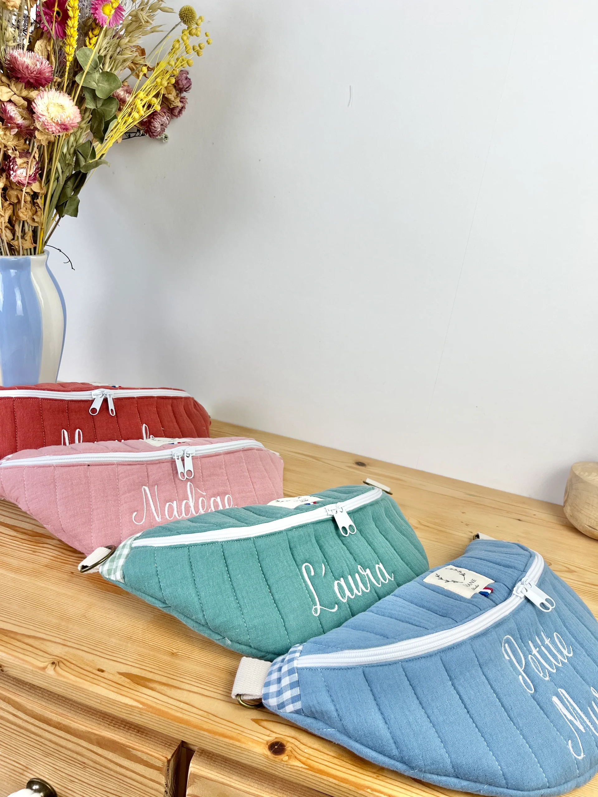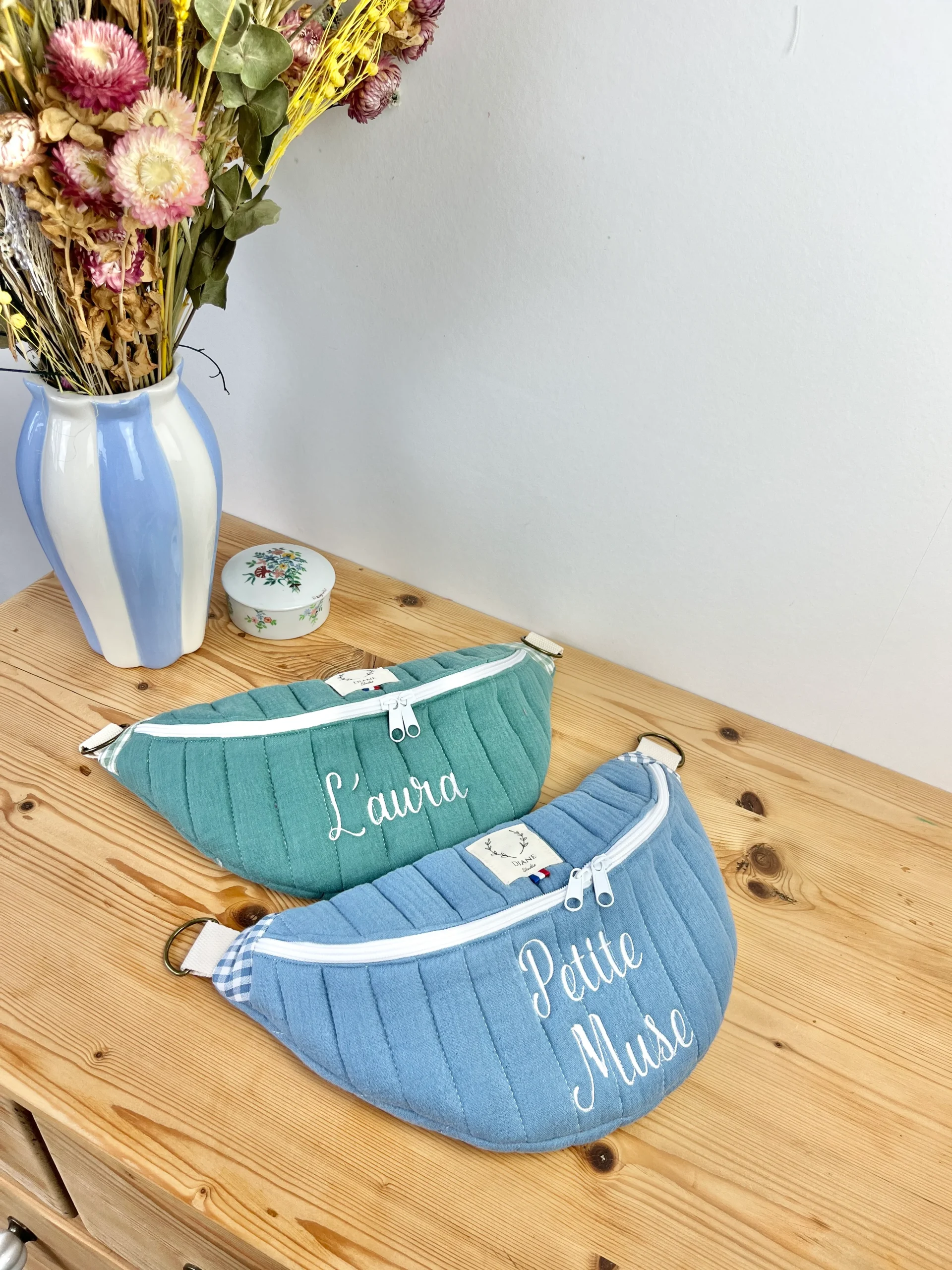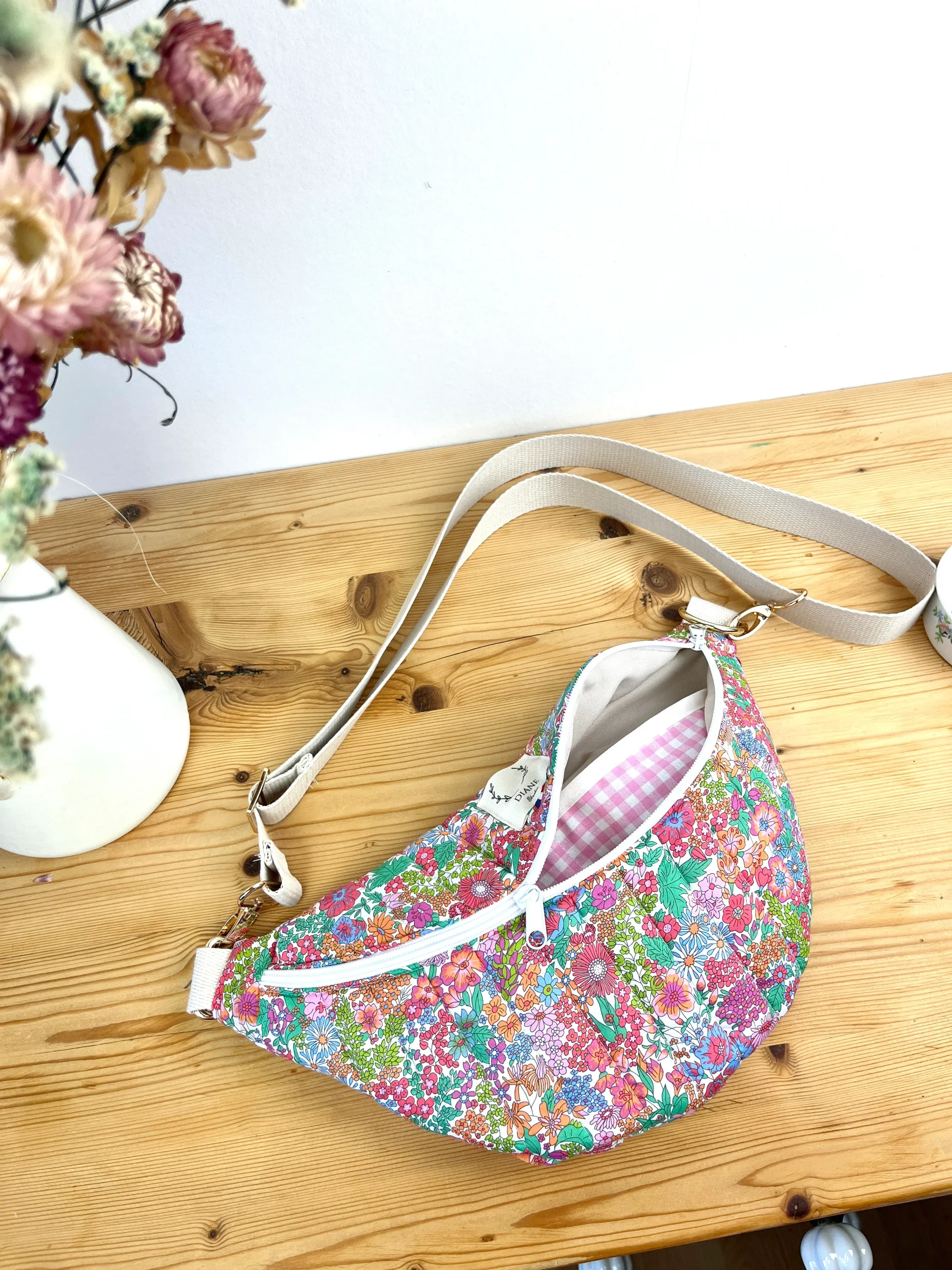 Ce joli sac banane vous accompagnera dans toutes vos sorties. Avec son anse interchangeable, vous pouvez facilement l’adapter à votre tenue en changeant de banane. Pratique et élégante, elle offre une grande contenance et des poches intérieures pour organiser vos affaires. Personnalisable à souhait, vous pouvez choisir les tissus et ajouter une broderie pour le personnaliser encore plus !