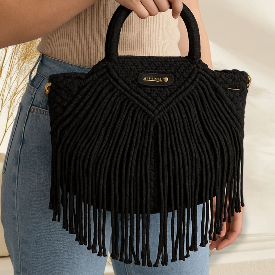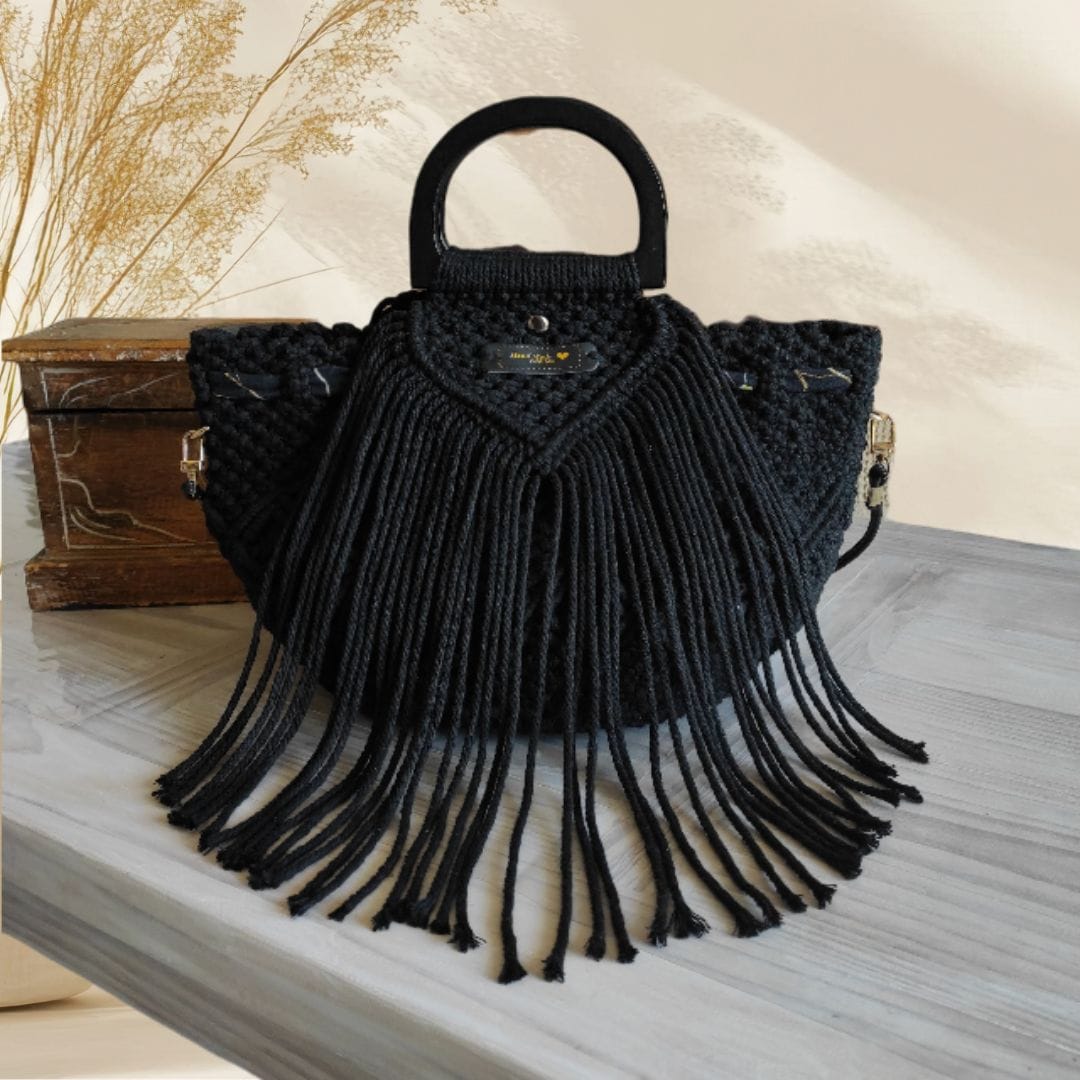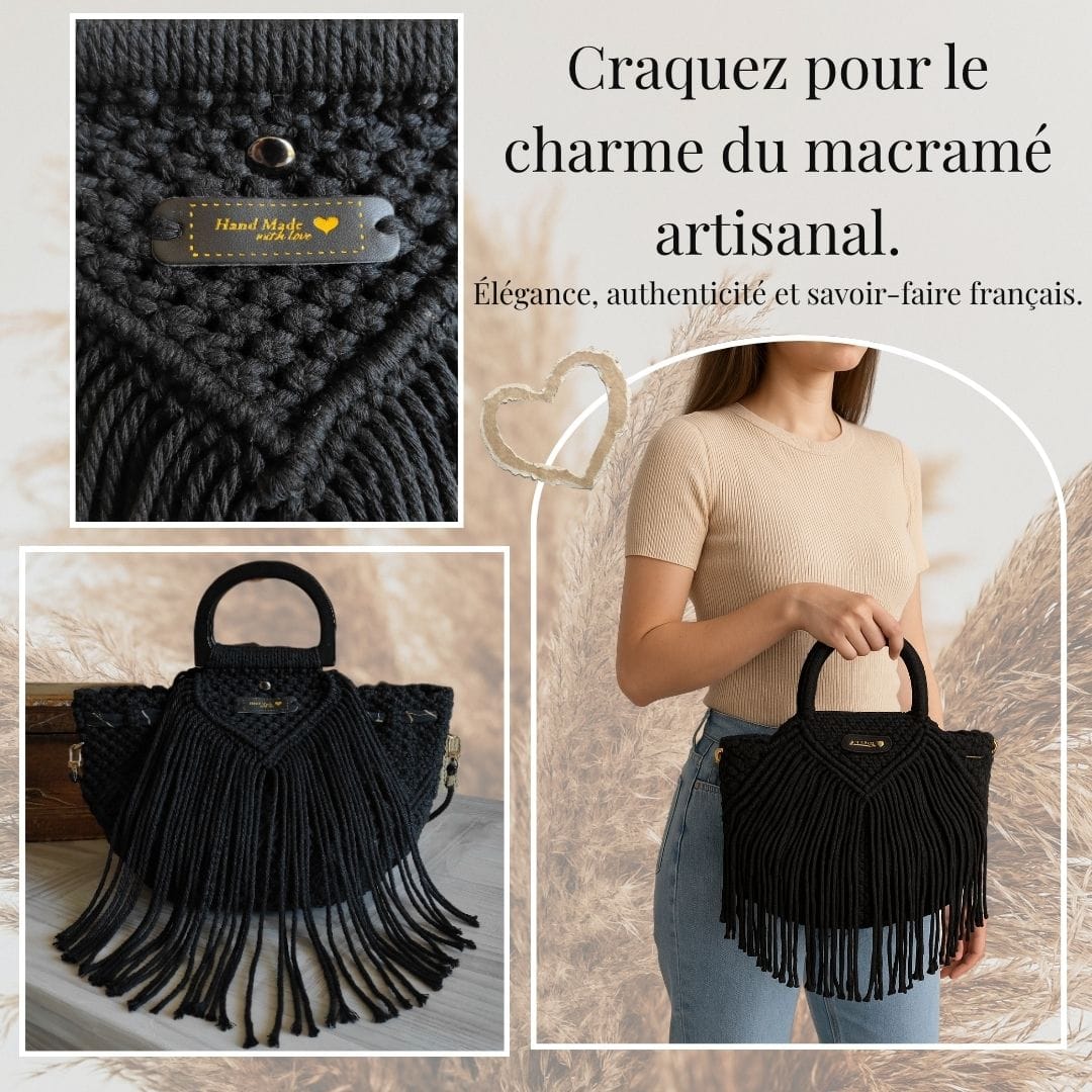 Sac à main macramé noir artisanal : élégance bohème et qualité faite main