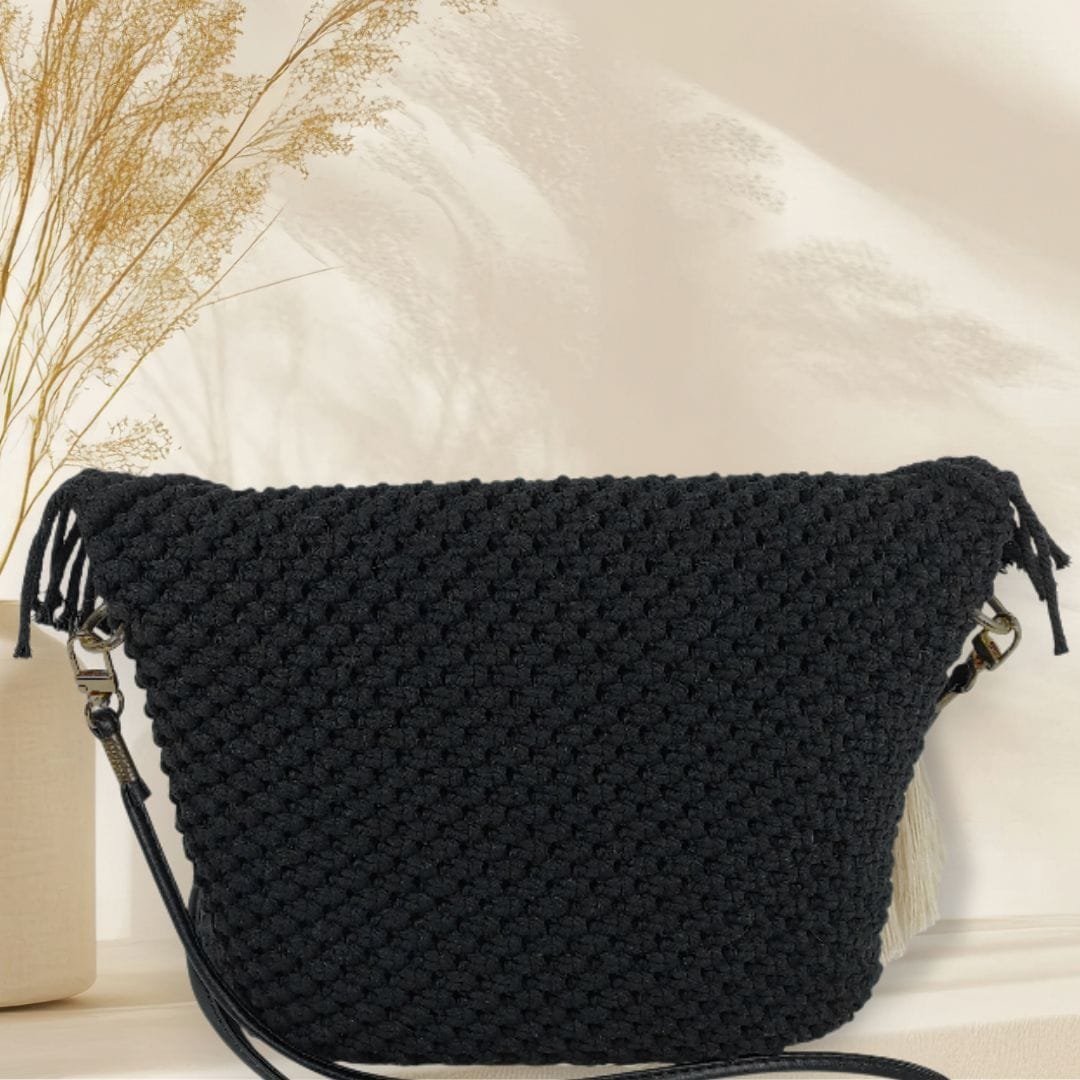 Sac bandoulière macramé noir artisanal – chic bohème fait main