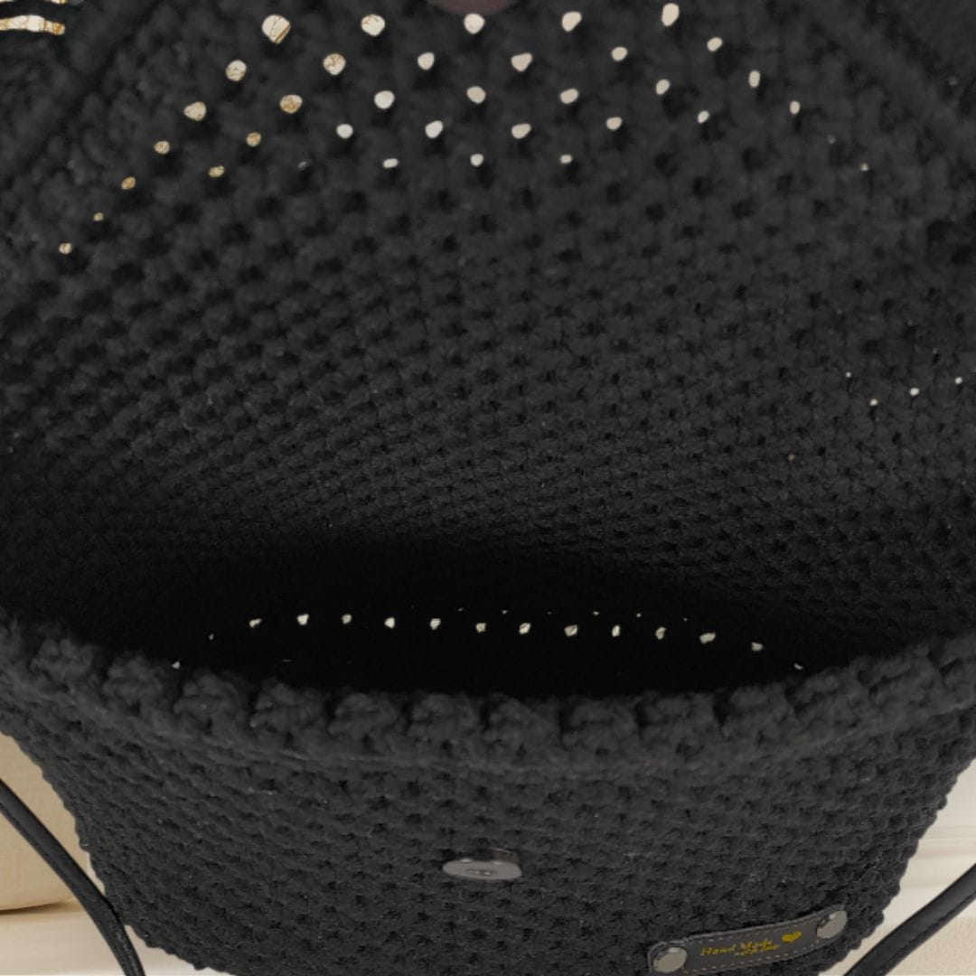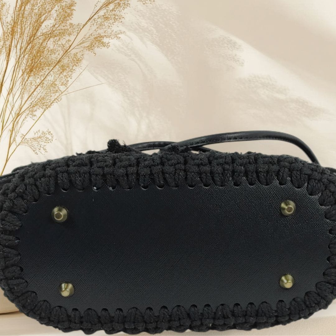 Le sac bandoulière macramé noir artisanal est entièrement tissé à la main dans mon atelier.