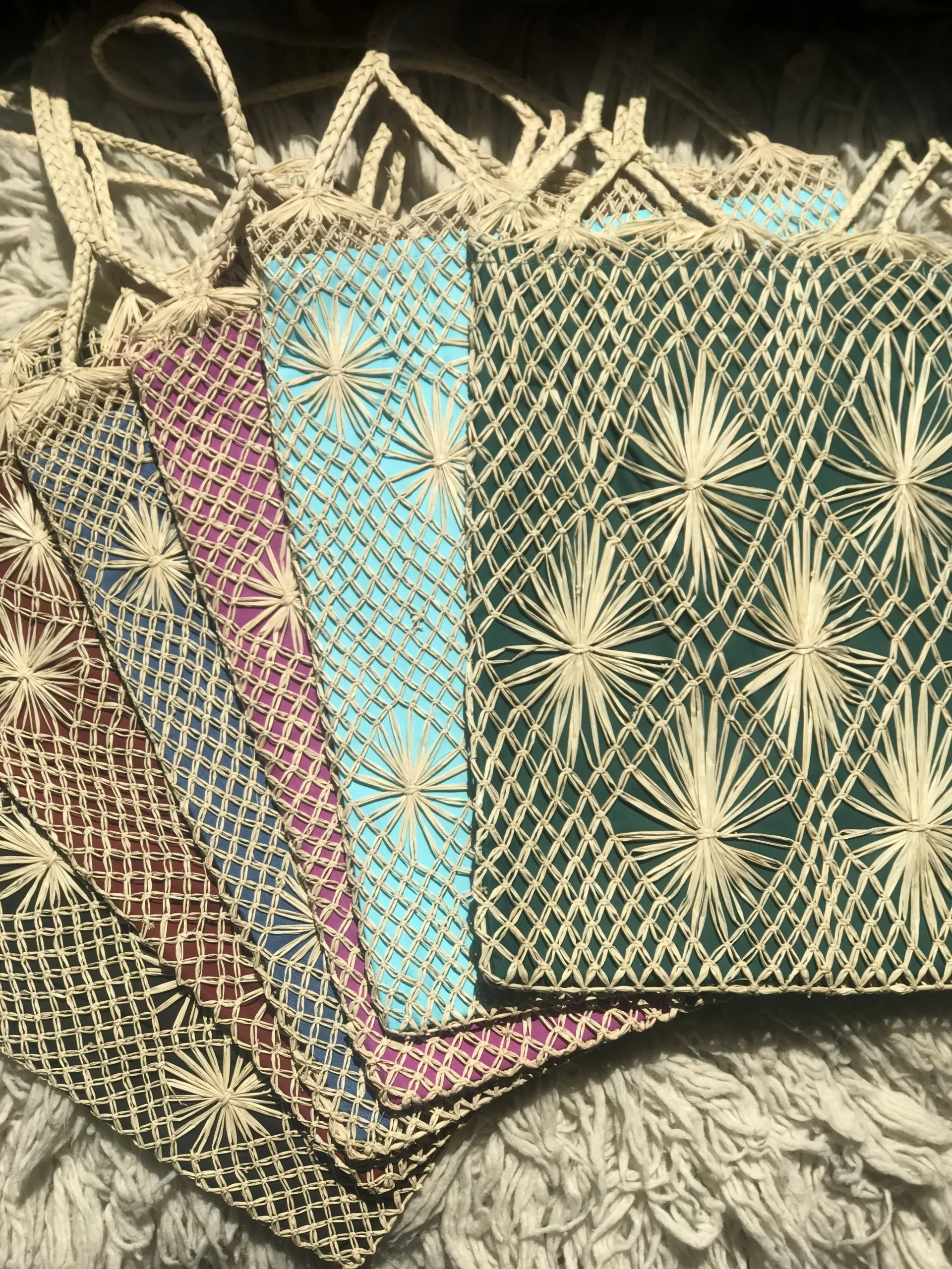 Produit :Sacs brésiliens, en paille de palmier, maille et macramé fait main par une communauté de femme à de extrême nord du Brésil. Chaque piece est unique.