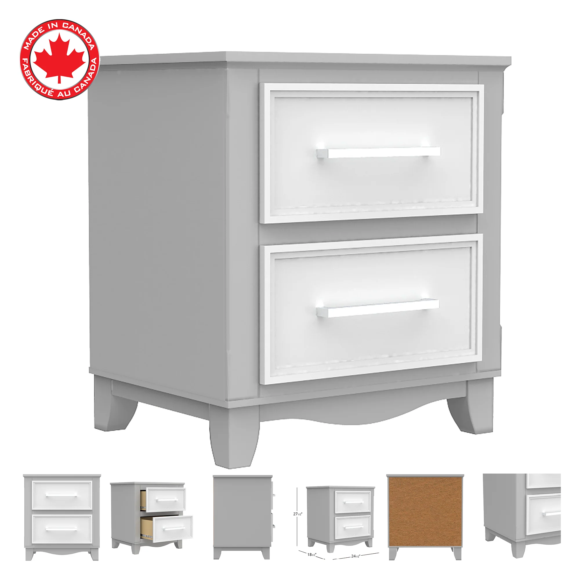 Table de nuit barton pour déco chambre, gris foncé & blanc
