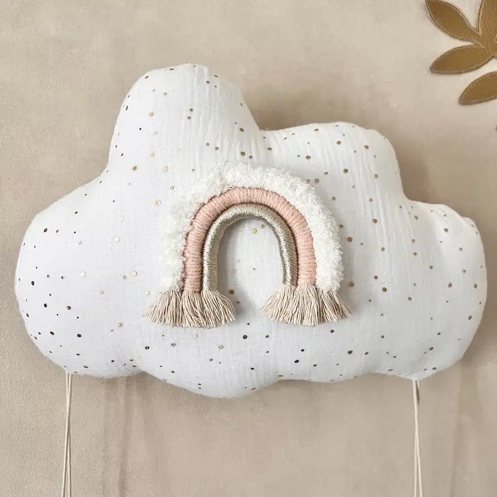 - Réalisation entièrement personnalisable : vous choisissez le coloris du tissu ainsi que de l’arc en ciel. C’est un cadeau de naissance idéal qui fera plaisir à coup sûr.